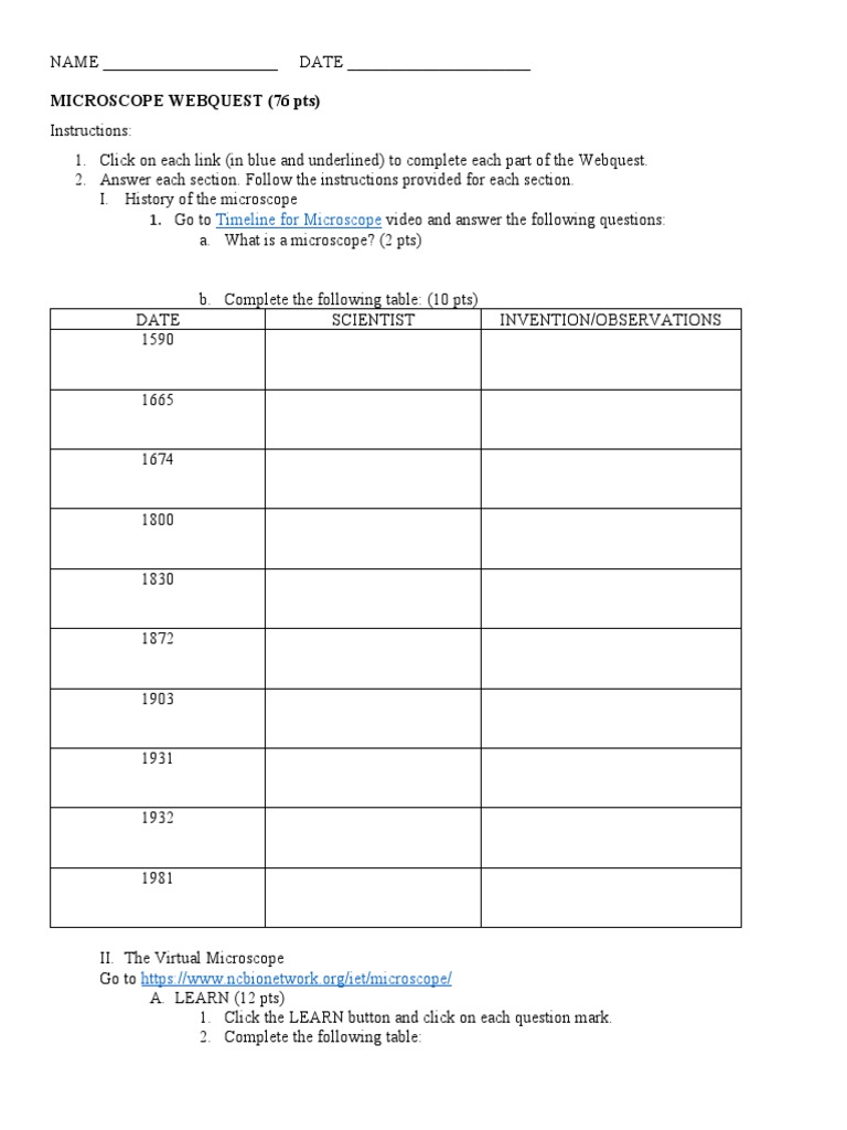 Microscope Webquest | PDF | Microscope | Scientific Techniques