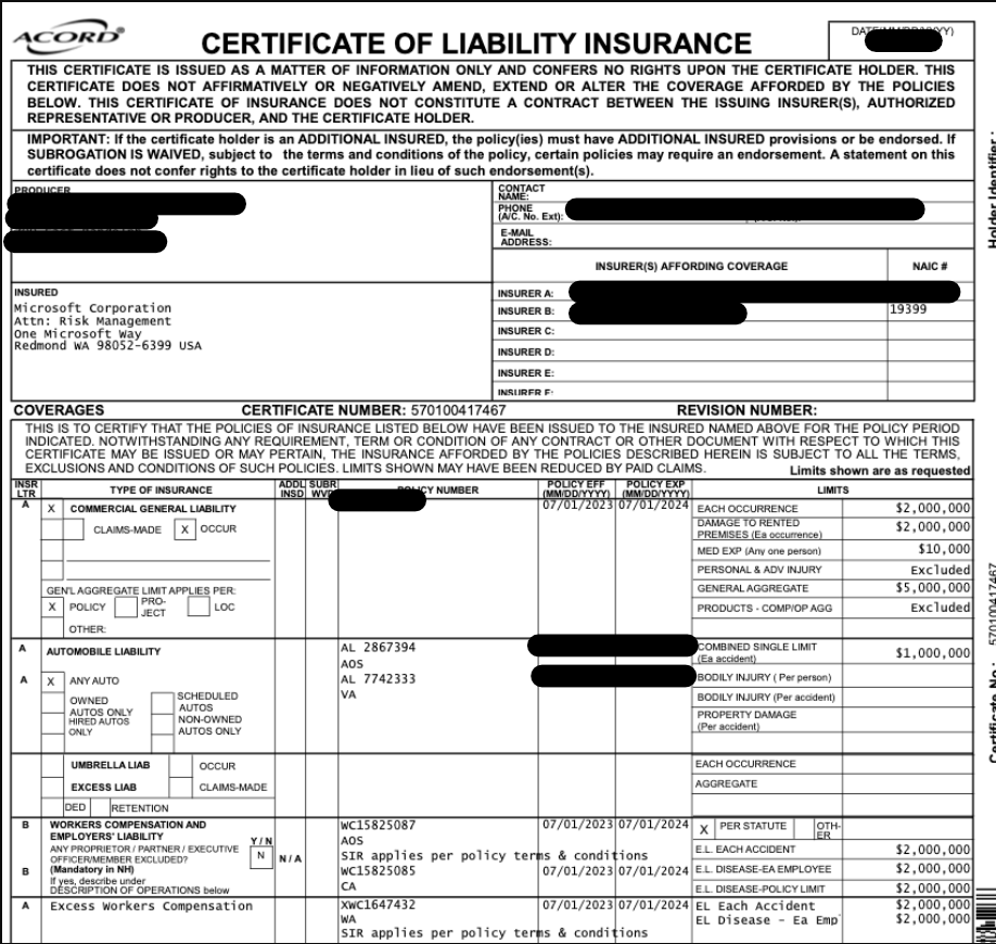 How can I get a copy of a current Microsoft Certificate of Liability ...