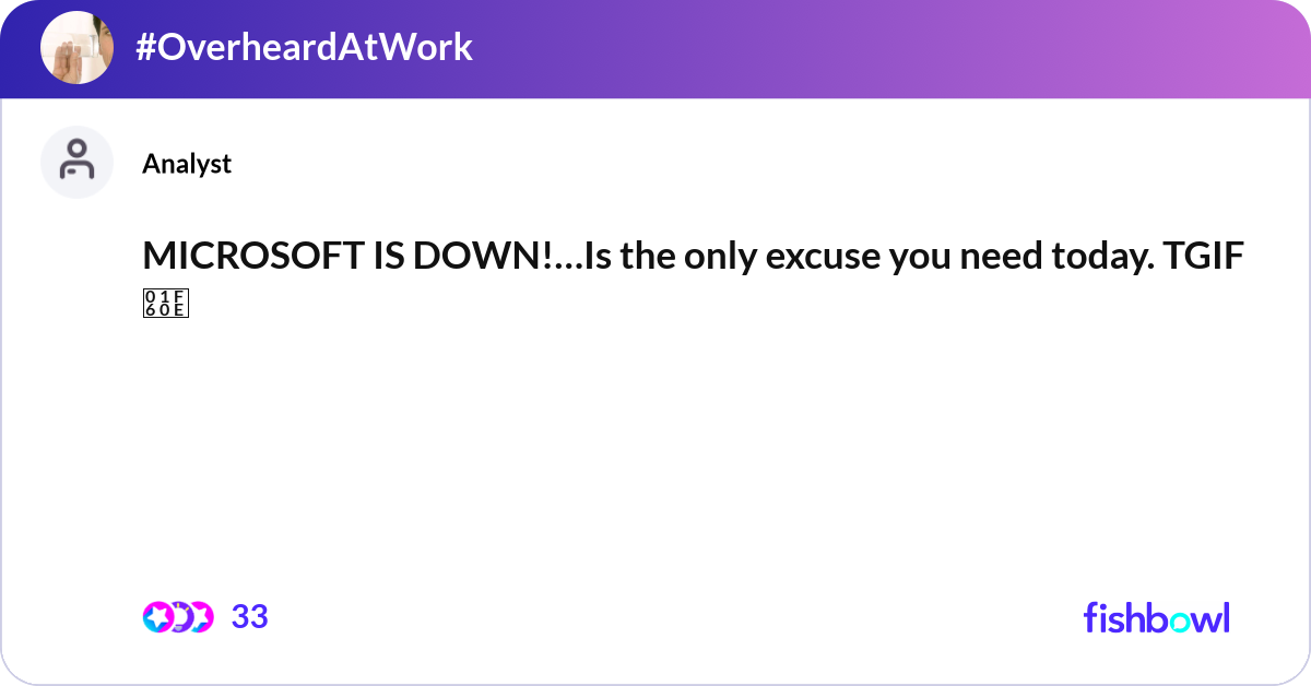 MICROSOFT IS DOWN!…Is the only excuse you need tod... | Fishbowl