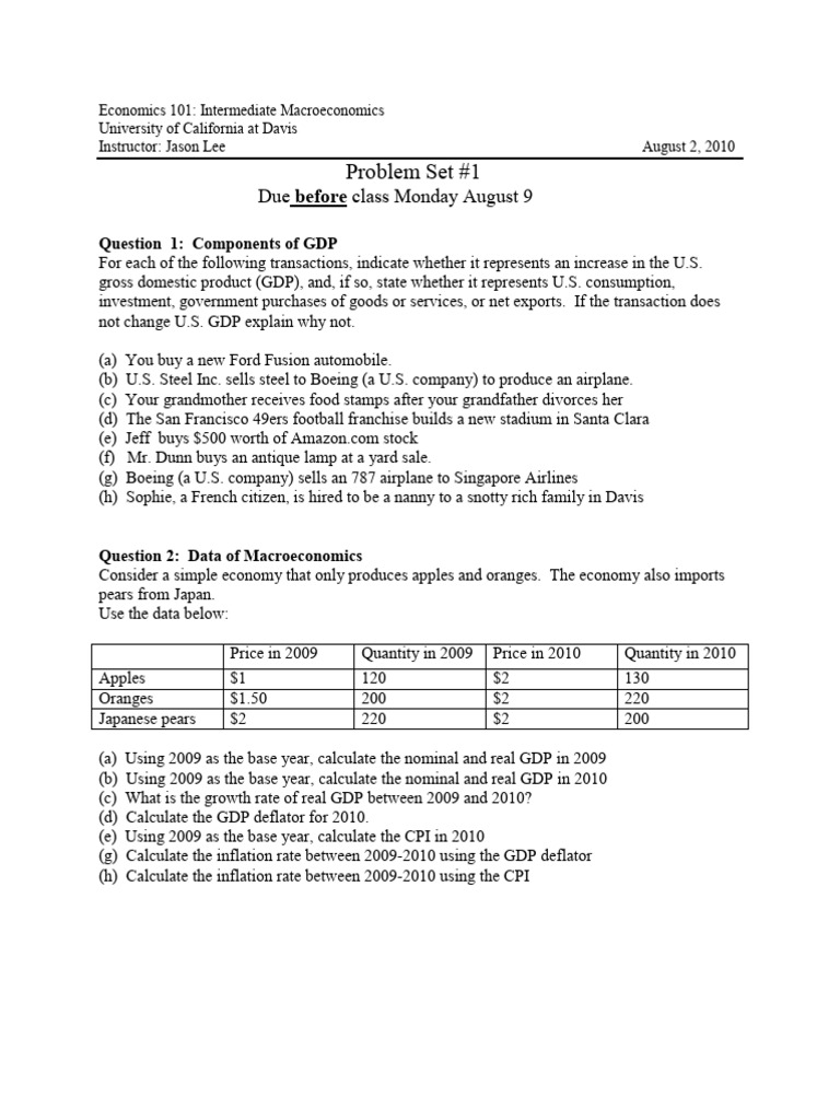 Microsoft Word - Problem Set 1 | PDF | Gross Domestic Product ...