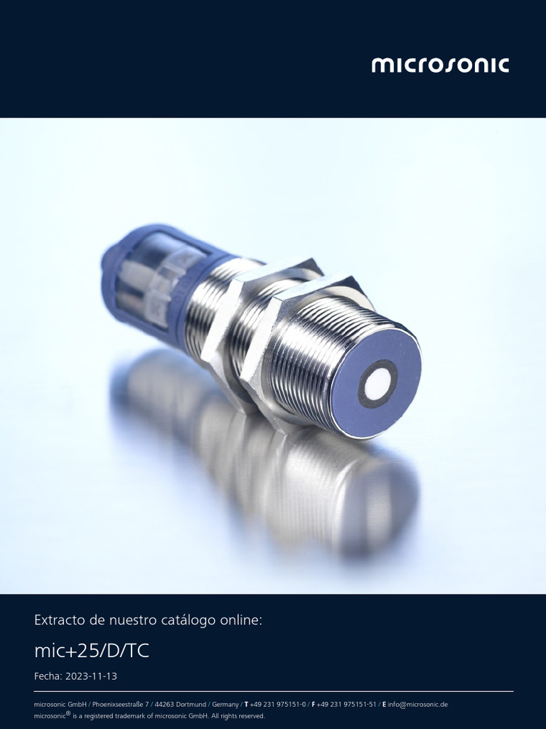 Microsonic Mic+25 D TC | PDF | Sensor | Ingeniería Informática