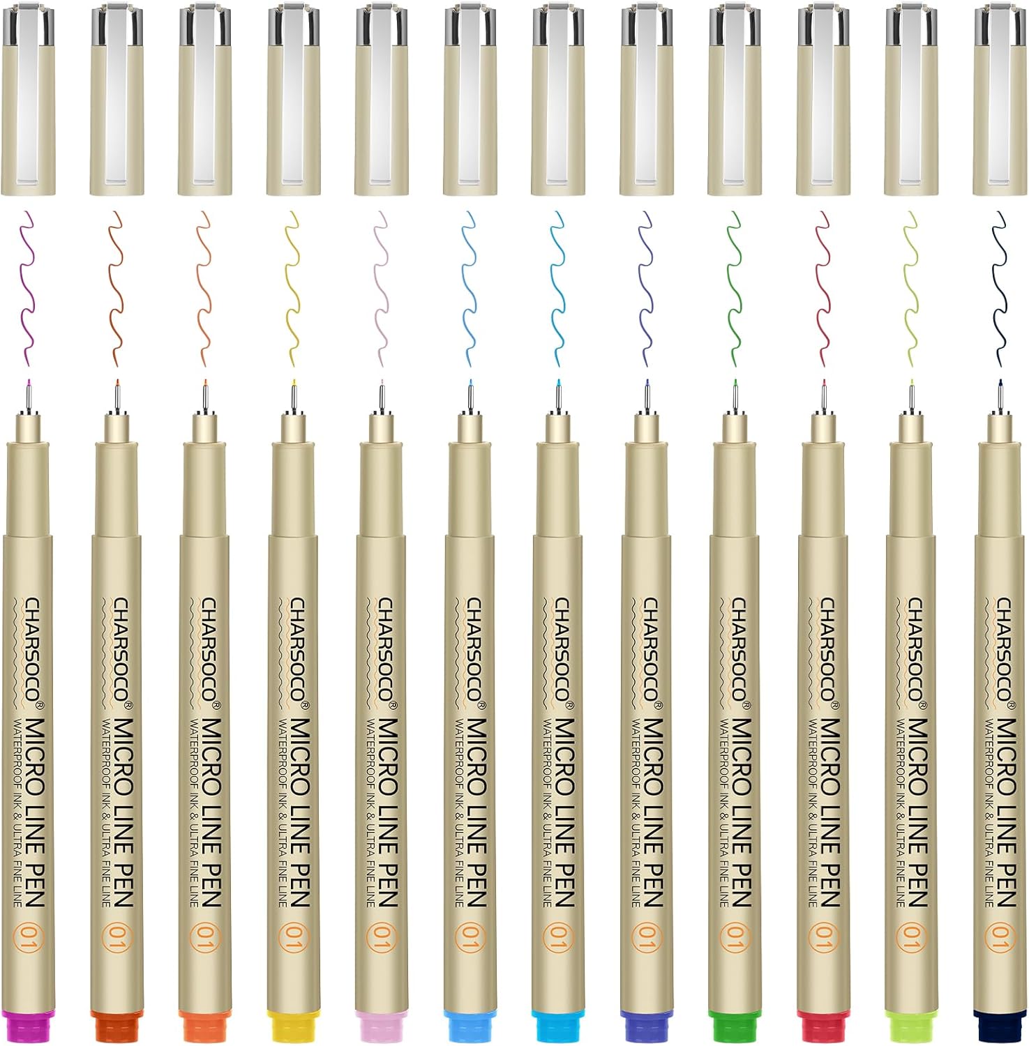 CHARSOCO Micro Pen, Fine Point Pen with 12 Colors, Waterproof Archival ...
