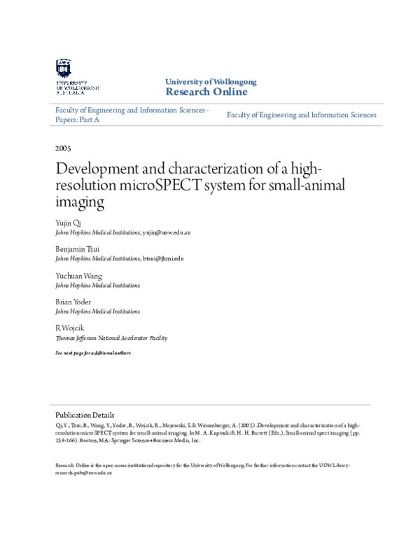 (PDF) Development and Characterization of a High-Resolution MicroSPECT ...