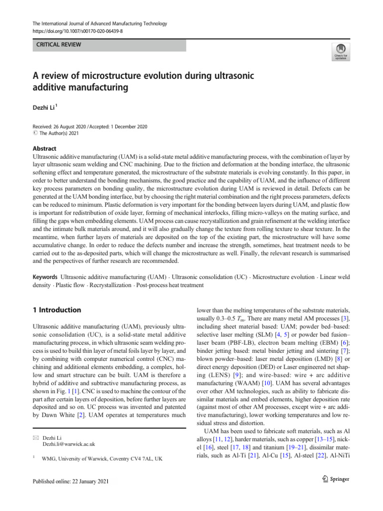A Review of Microstructure Evolution During Ultrasonic Additive ...