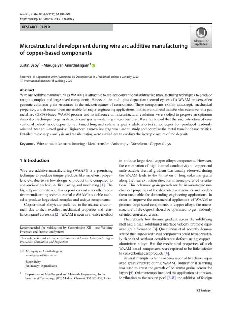 Microstructural Development During Wire Arc Additive Manufacturing of ...