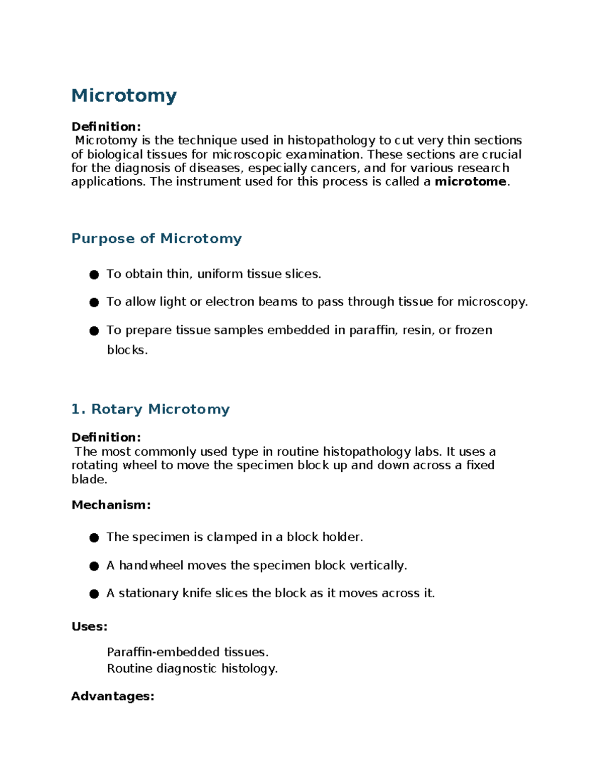 Microtomy Techniques in Histopathology: Types and Applications - Studocu