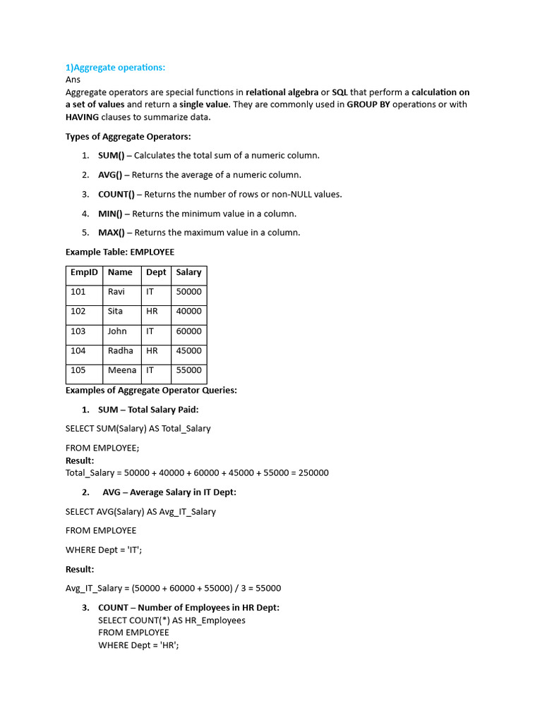 Dbms Mid Imp With Answers | PDF | Database Index | Database Transaction
