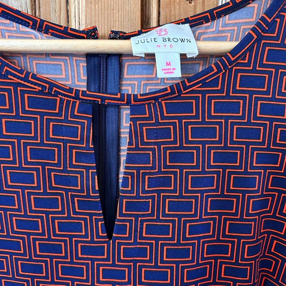 Julie Brown NYC Womens Size Medium Blue Orange Red Shift Dress Office ...