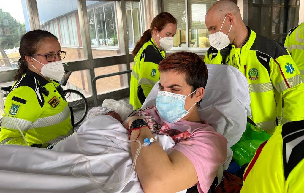 Vrouw bevalt midden op straat in Madrid van een baby met hulp van een ...