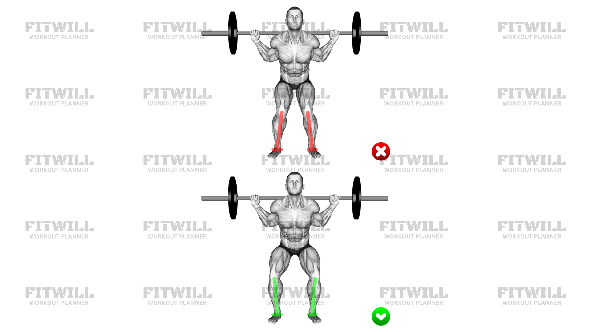 Barbell Squat - Knees - Middle Position (WRONG-RIGHT): Exercise Guide ...