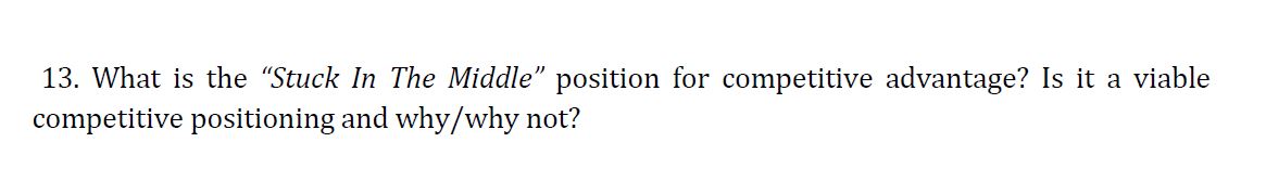Solved 13. What is the “Stuck In The Middle” position for | Chegg.com
