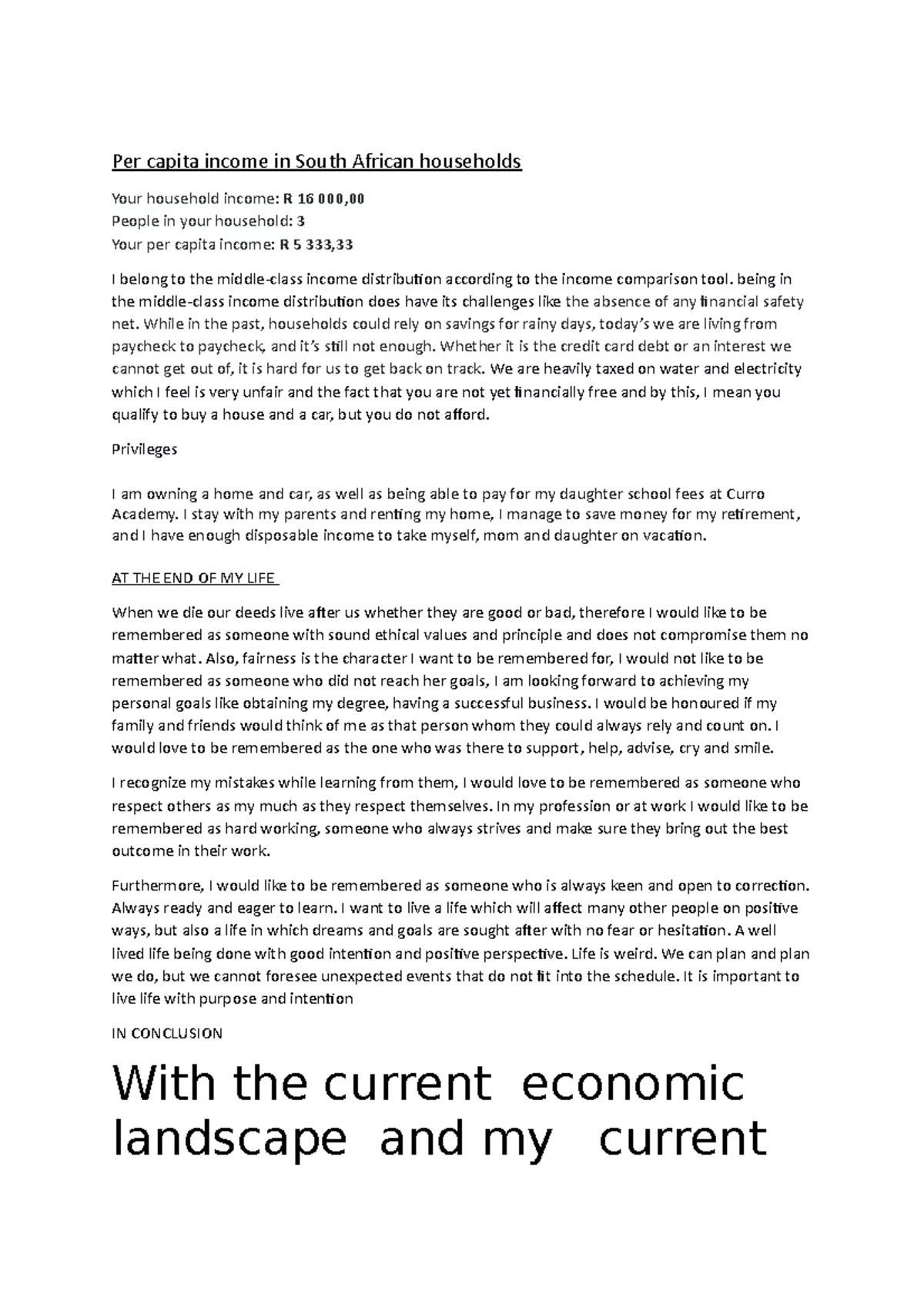 SUS1501 Assessment 5: Middle-Class Income Perspectives in South Africa ...