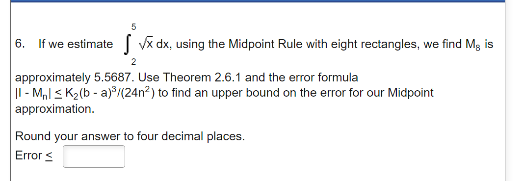 Solved The error estimate formula by the midpoint rule is EM | Chegg.com