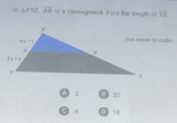 Solved: In XYZ,overline AB is a midsegment. Find the length of overline ...