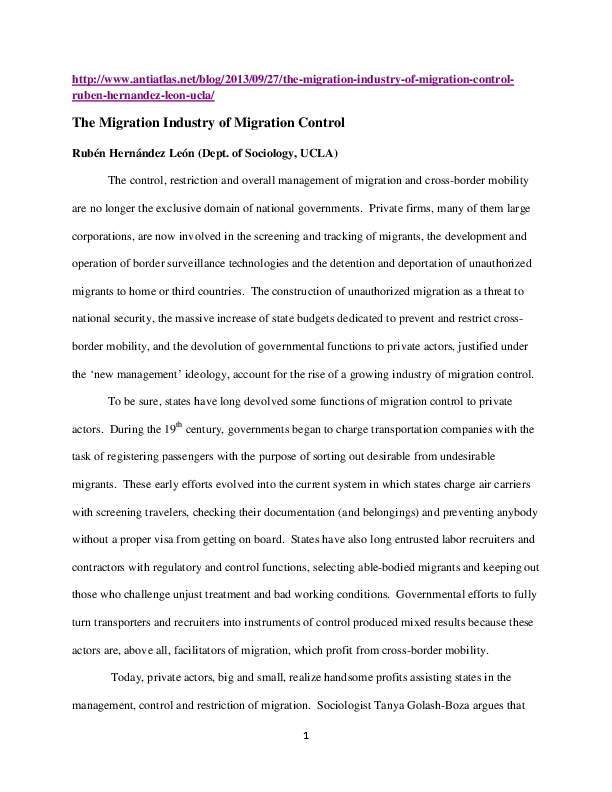 (PDF) The Migration Industry of Migration Control