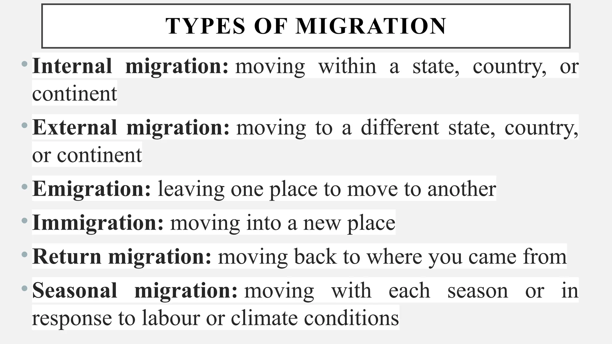 Migration Definition, Types, AND Causes - MIGRATION DEFINITION, TYPES ...