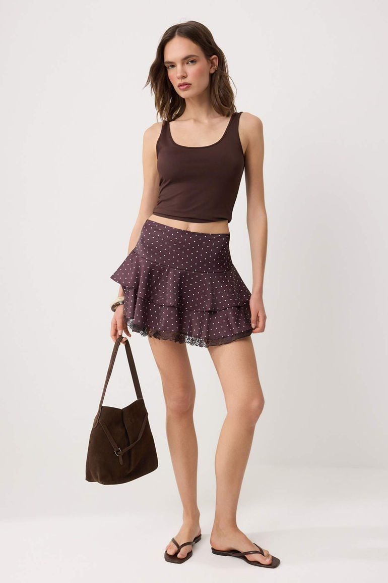 Brown Lace Detailed Satin Polka Dot Piece Mini Short Skirt Trendyol ...