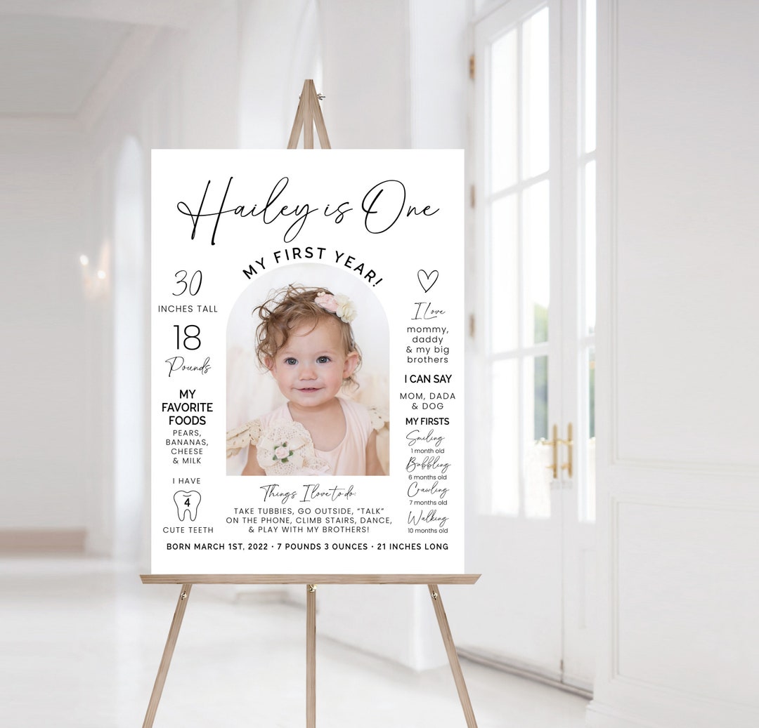 Modern 1st Birthday Milestone Poster: Photo Sign Template (digital ...