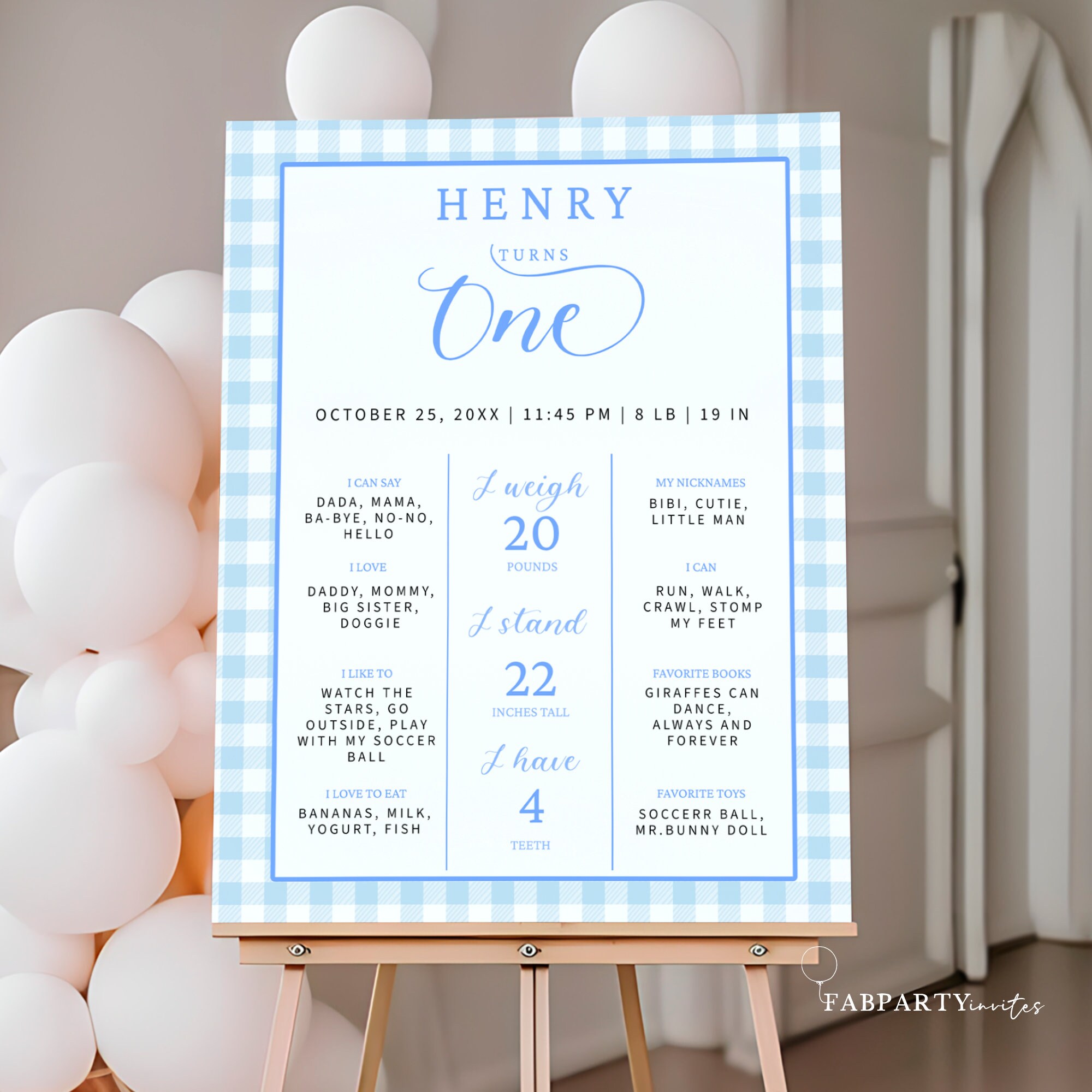 Milestone Sign First Birthday Boy, Blue Gingham Milestone Board ...