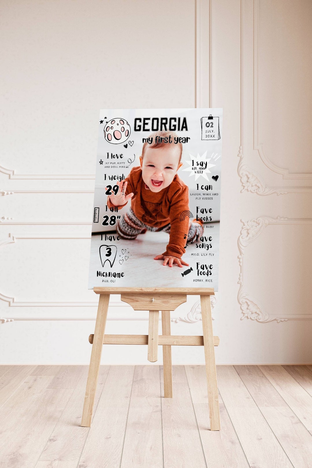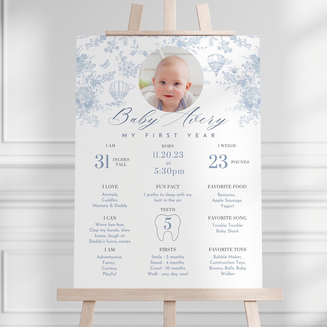Editable 1st Birthday Milestone Sign: Photo Board Poster Template - Etsy