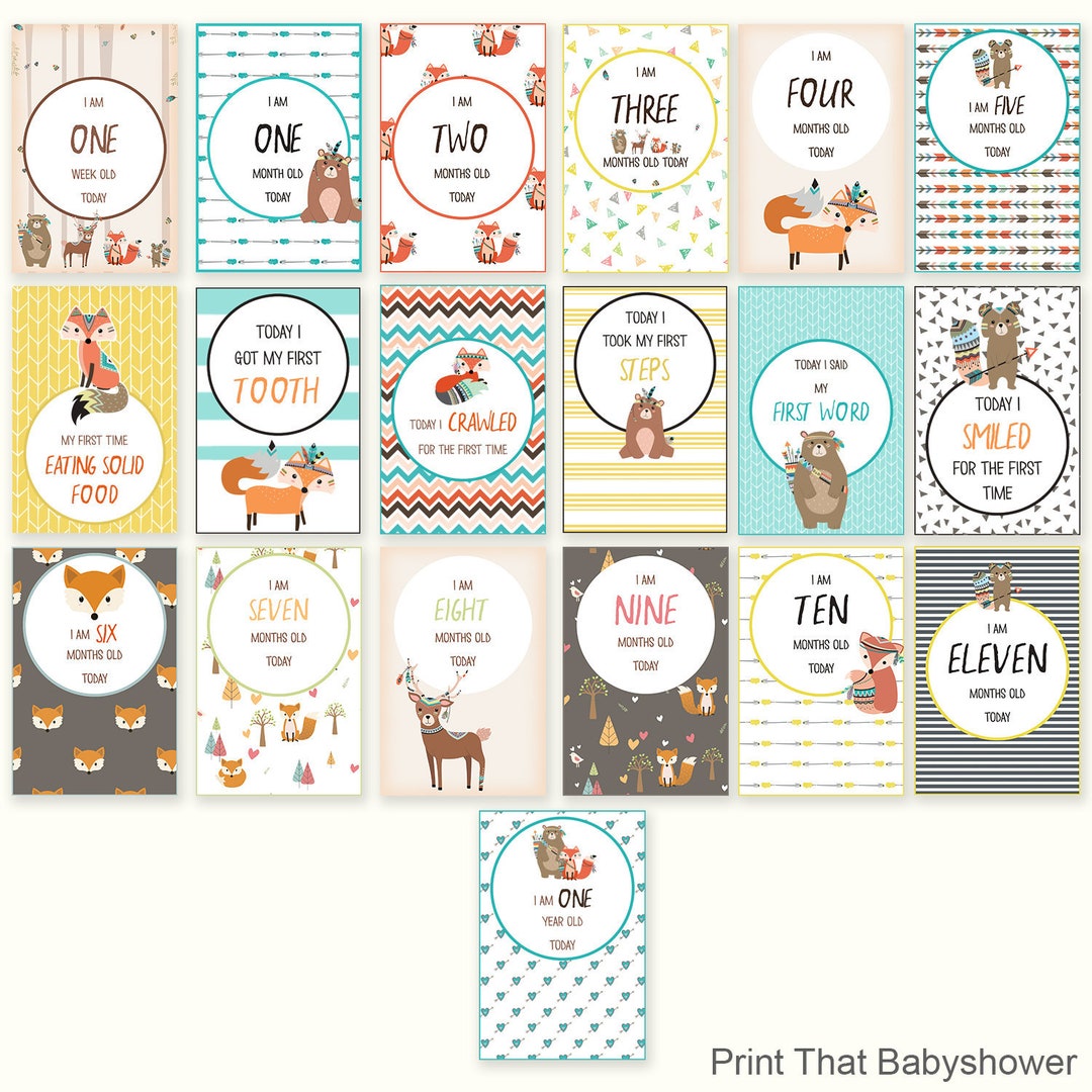 19 Woodland Baby Milestone Cards - Baby Milestone Signs - Set of 19 ...