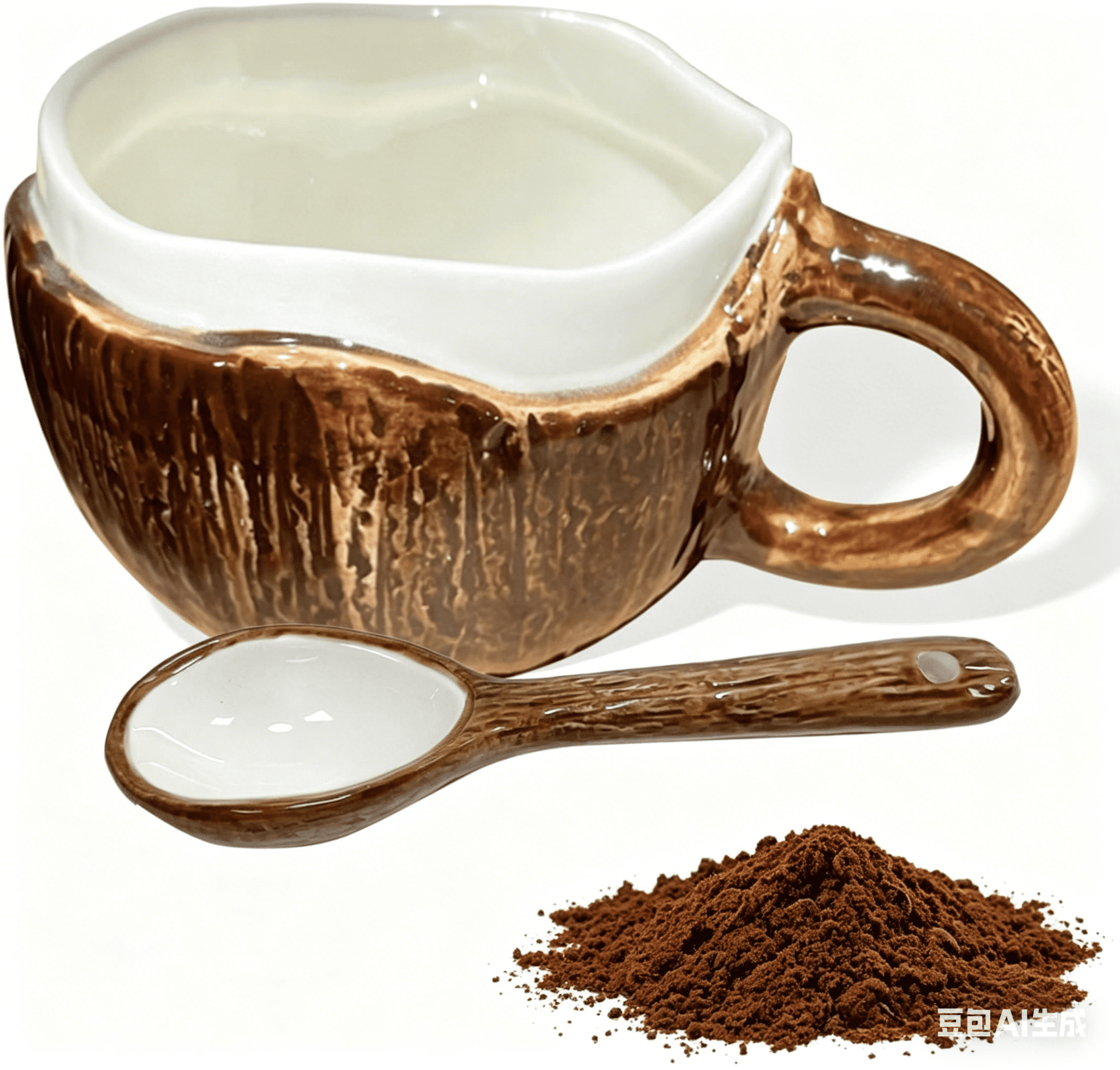 8.5oz Ceramic Coffee Mug Coconut Shell Shape with Spoon, Tropical Tiki ...