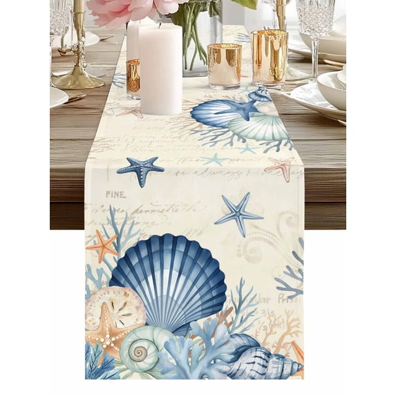 Blue Ocean Table Runner - 120 Inch Long Summer Marine Shells Couch ...
