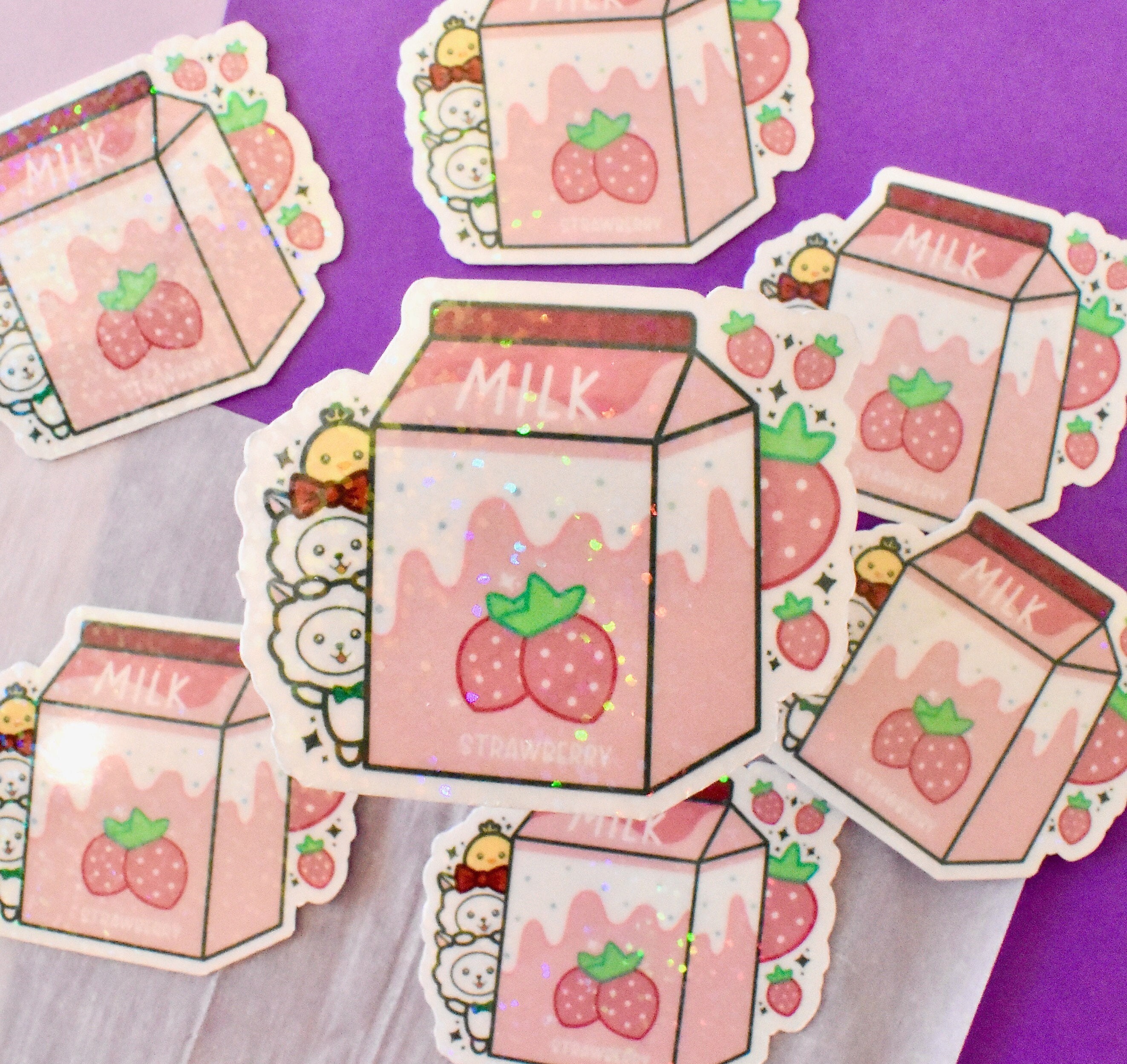 KAWAII STRAWBERRY MILK STICKERS! 🍓🥛 : r/stickers
