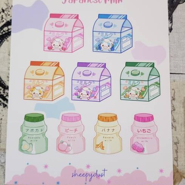 Kawaii Japanese Milk Sticker Sheet Milk Carton Sticker Sheet - Etsy