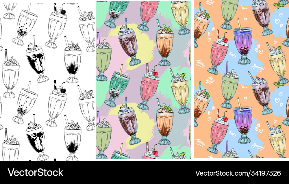Seamless Color Pattern Three Types Milkshake Stock Vector (Royalty Free ...