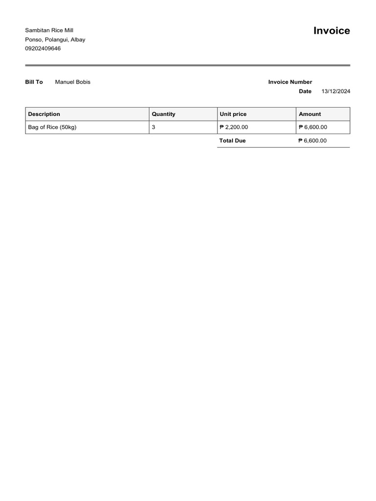 Philippines Sambitan Rice Mill Invoice Template In Word And PDF Formats