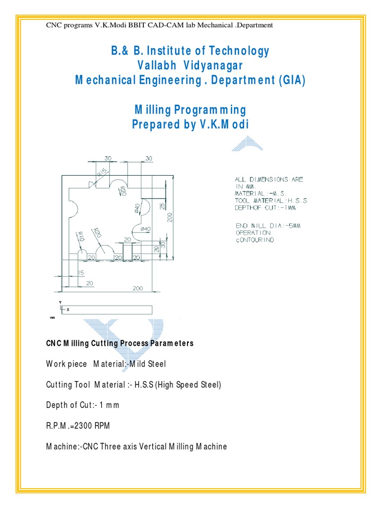 Example of CNC Milling Program CAM 2021 Compiled by V.K.Modi | PDF
