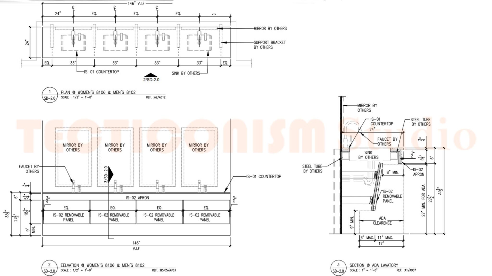 1on1 Design Solutions Sample Millwork and Casework Shop Drawings