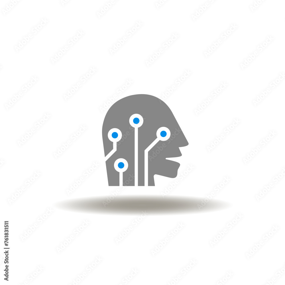 Vector illustration of head with circuit brain computer. Icon of AI ...