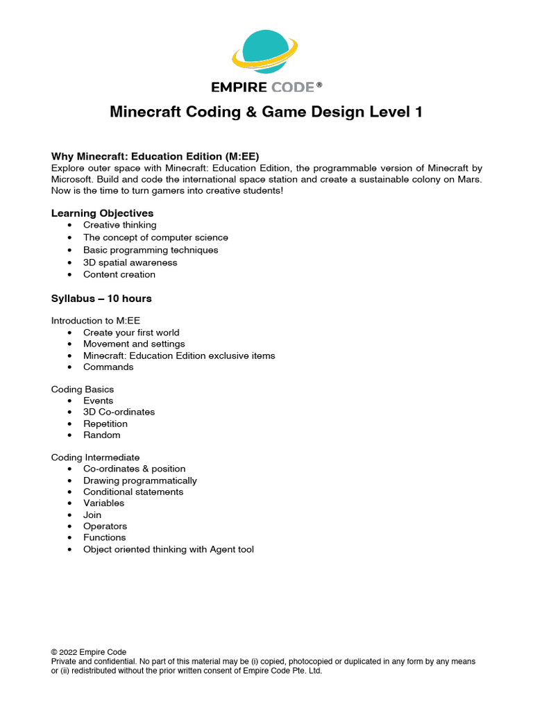 Empire Code - Minecraft Coding & Game Design Level 1 - Framework ...