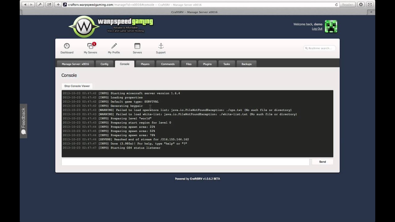 WarpSpeedGaming.com - Minecraft Craftsrv Control Panel DEMO - YouTube
