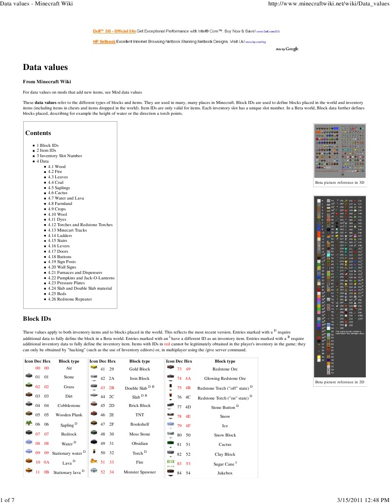 Minecraft Data Values 1 | PDF | Creative Commons | Business