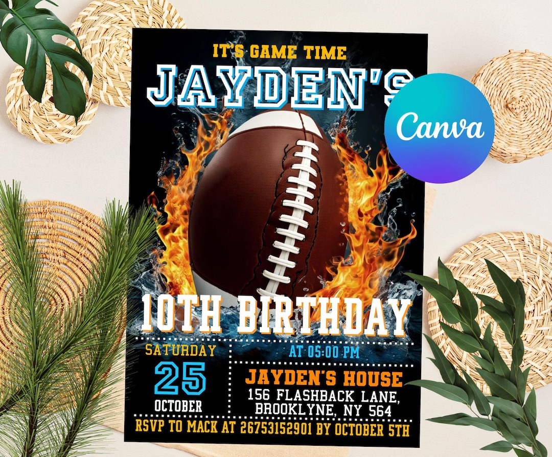 EDITABLE Football Invitation, Football Birthday Party Invitation ...