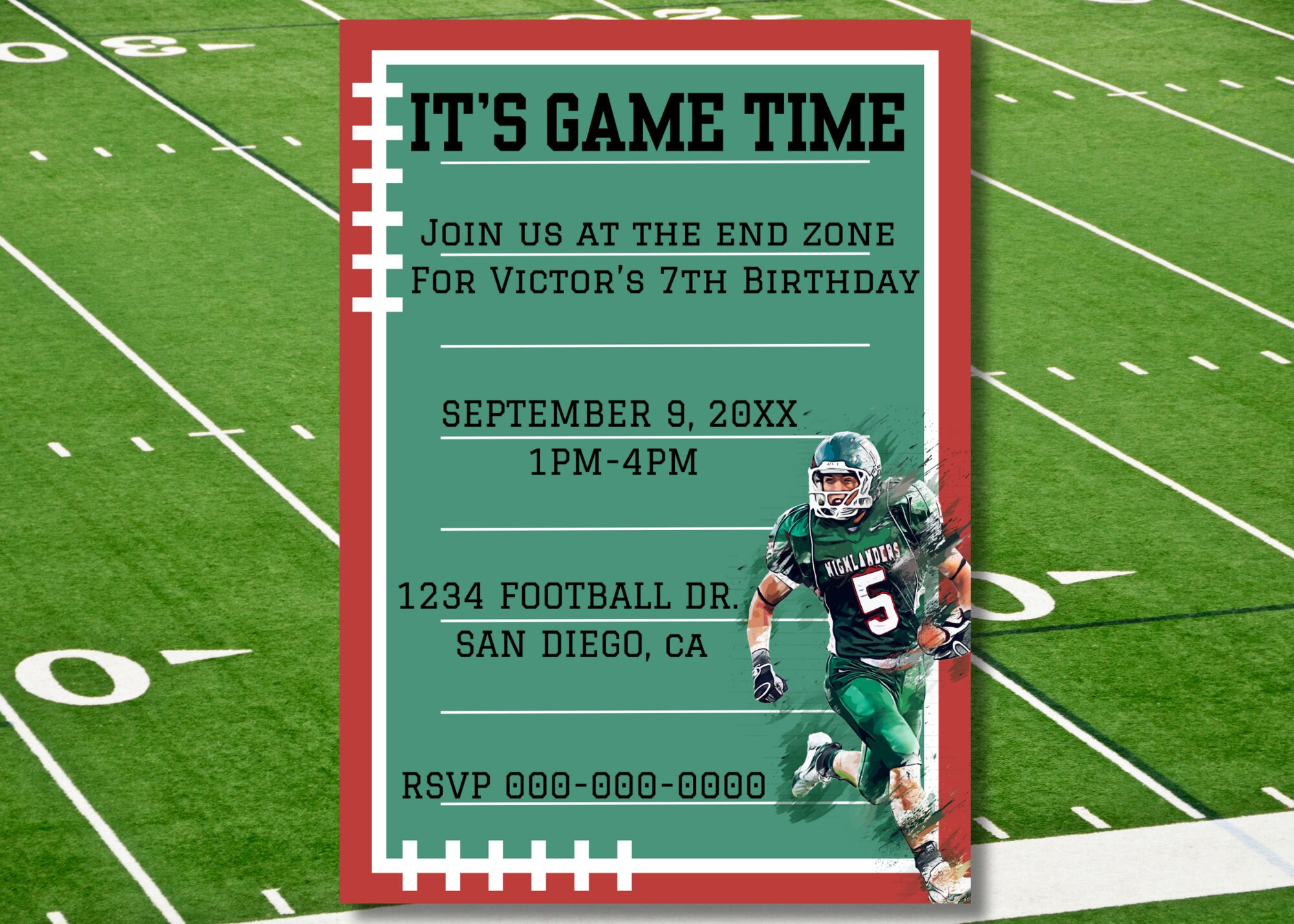 Custom Football Party Invitation, Football Invitation With Photo ...
