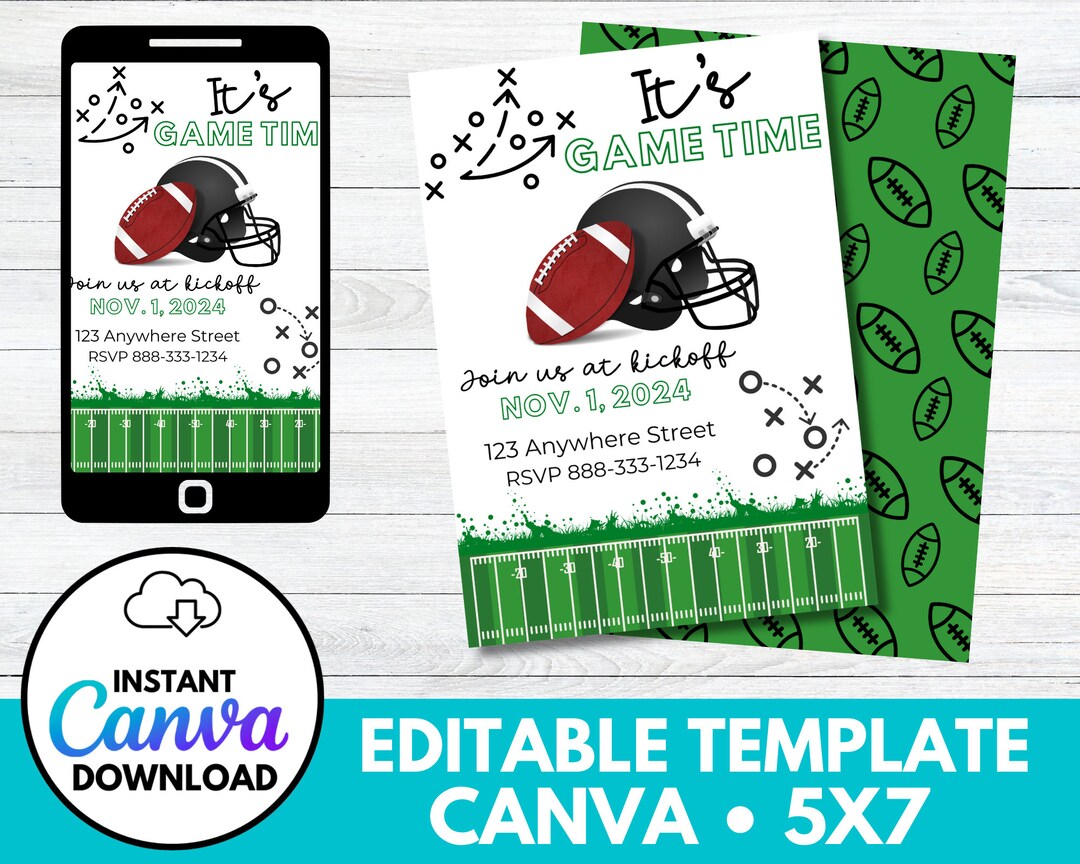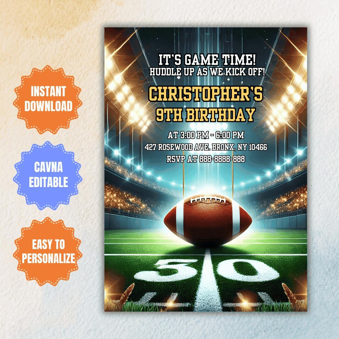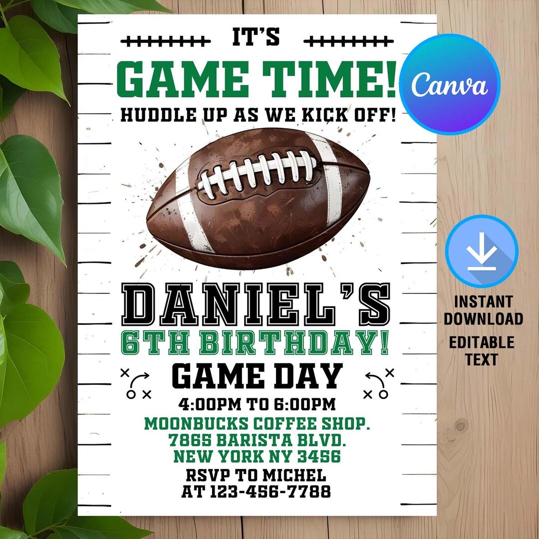 Editable Football Invitation, Football Birthday Party Invitation, Game ...
