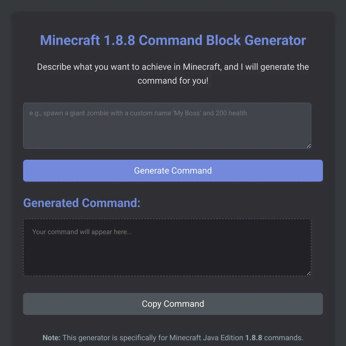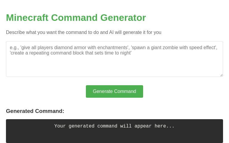 Minecraft Command Generator - Advanced AI for mcfunction
