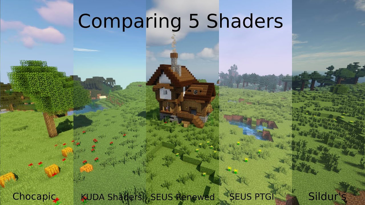 Minecraft Shader Comparison(BSL, SEUS, CHOCAPIC, SILDURS) - YouTube