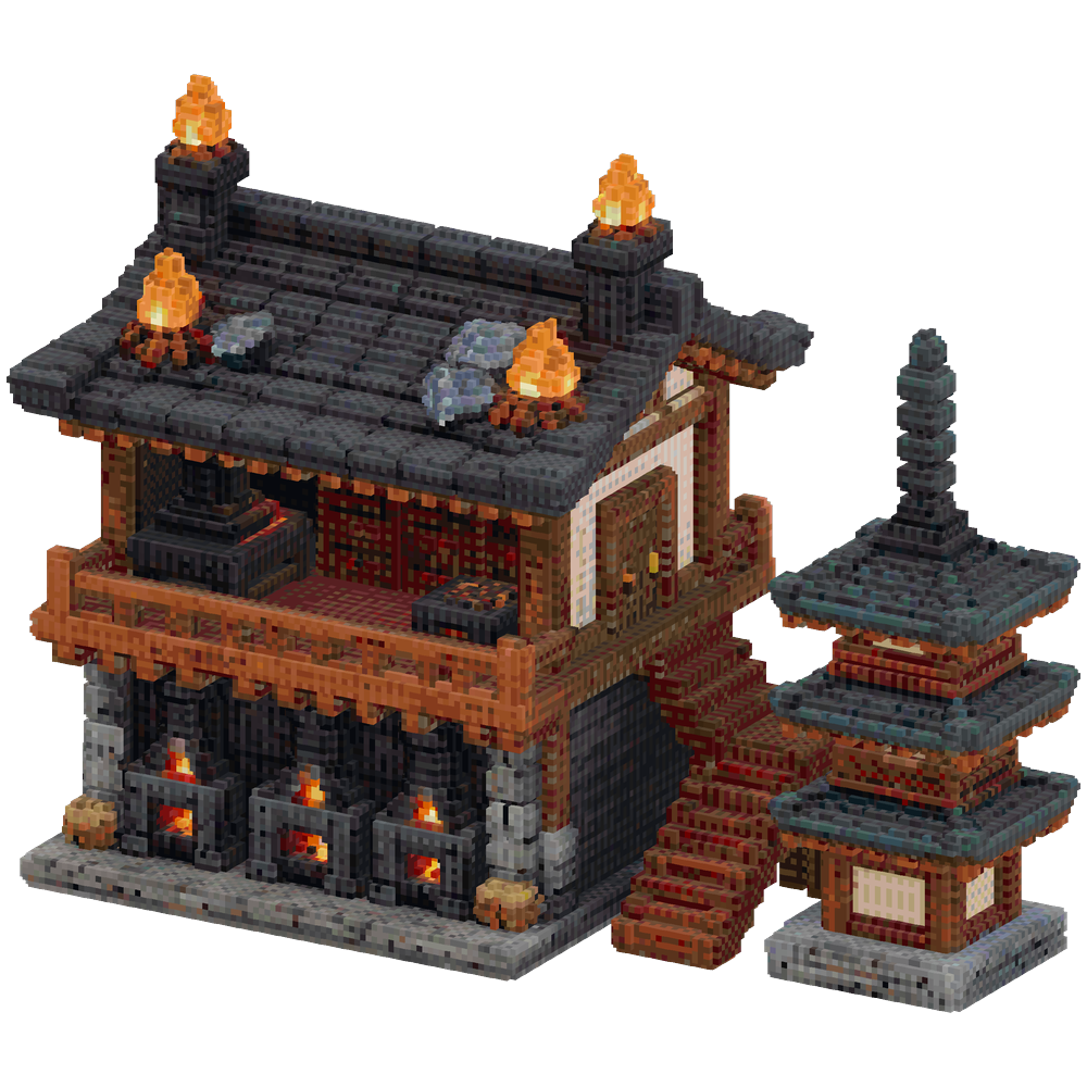 Japanese forge hall building, 25x20... | Minecraft Build - BlockGPT