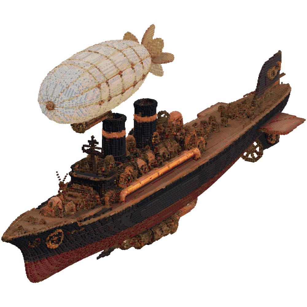aggressive steampunk flying warship... | Minecraft Build - BlockGPT