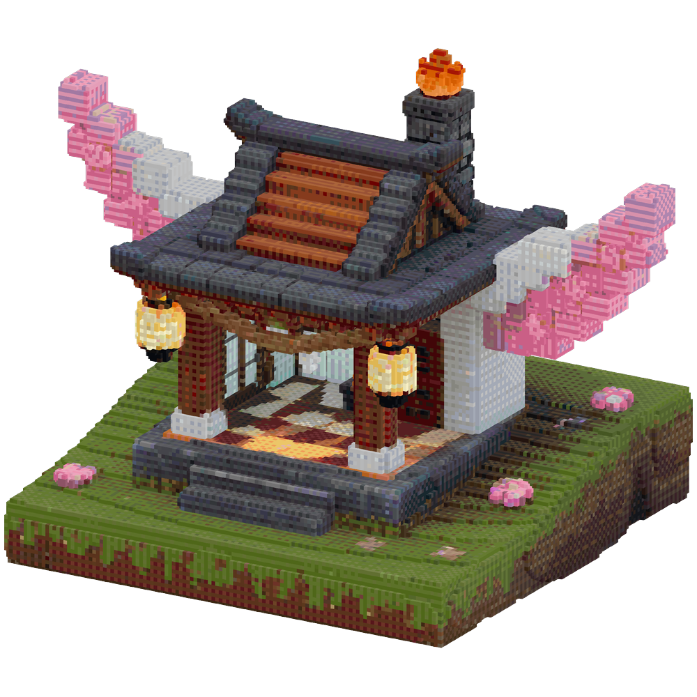 Japanese cherry blossom shrine base... | Minecraft Build - BlockGPT