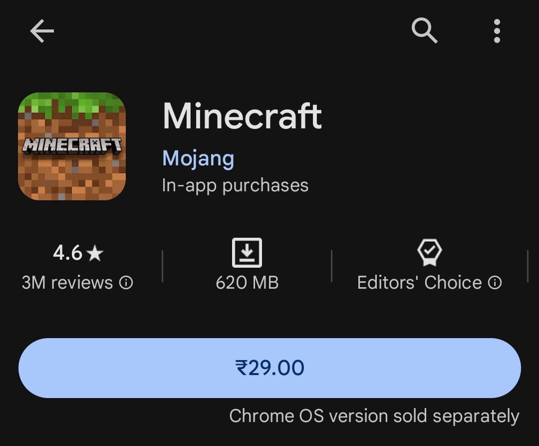 Minecraft Android App in the Google Play Store