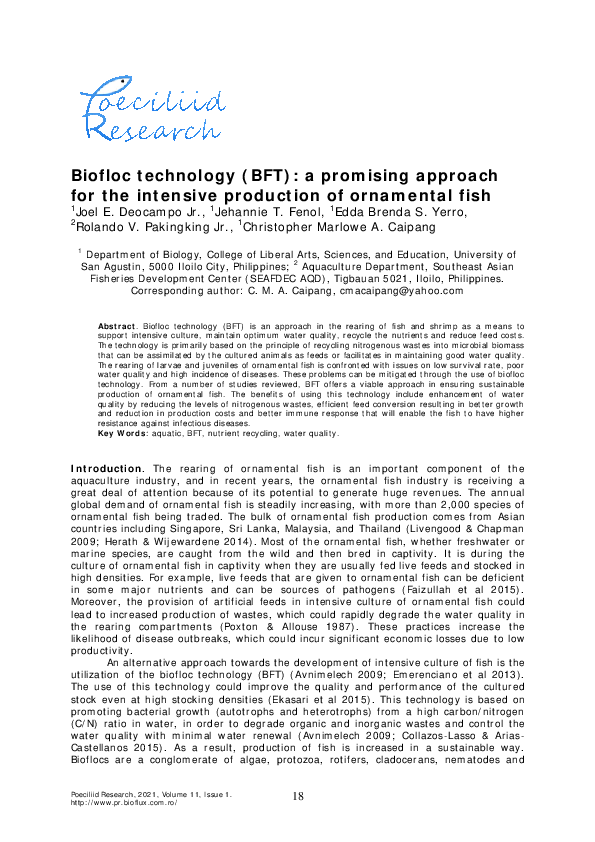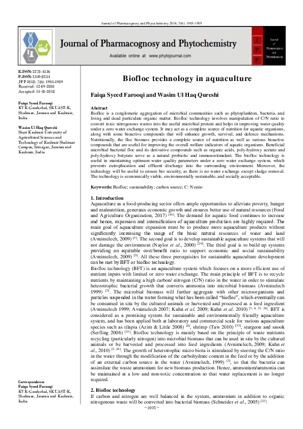 (PDF) Biofloc technology (BFT): a promising approach for the intensive ...