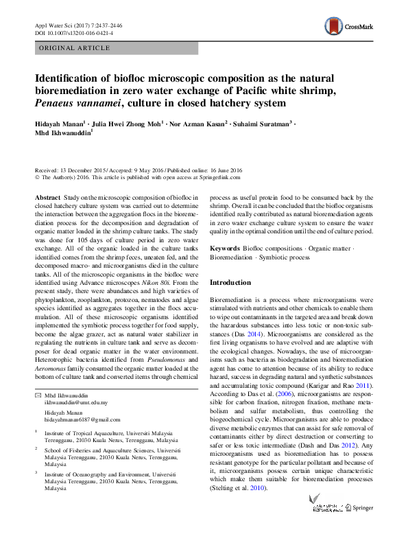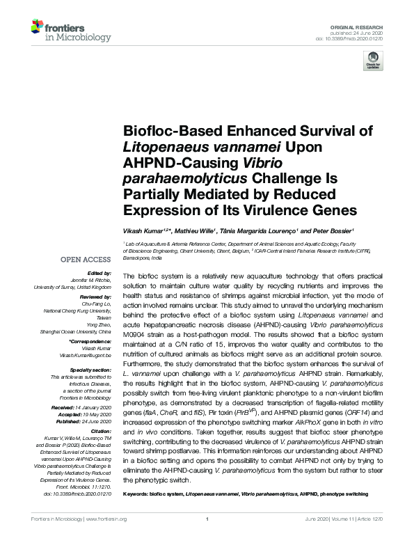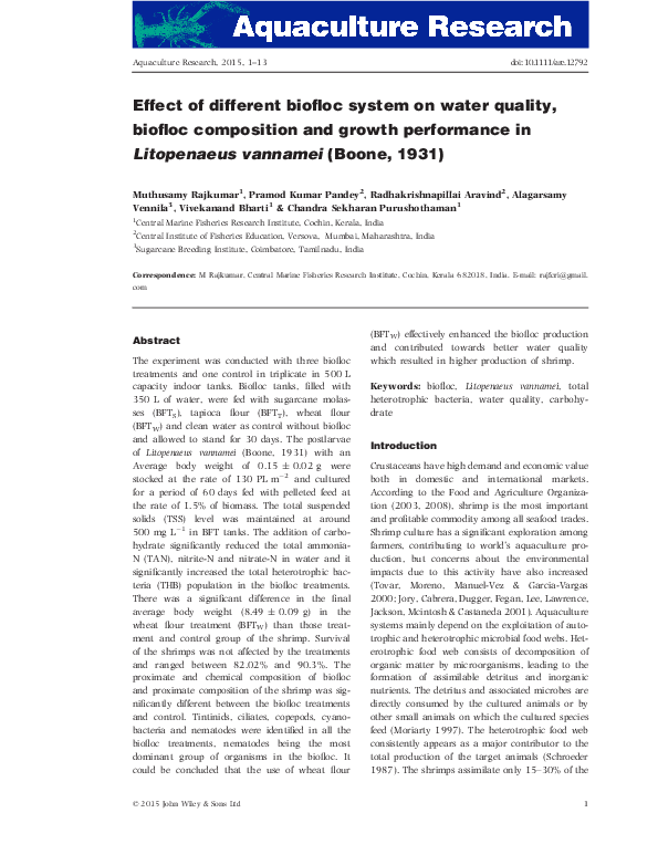 (PDF) Biofloc-Based Enhanced Survival of Litopenaeus vannamei Upon ...