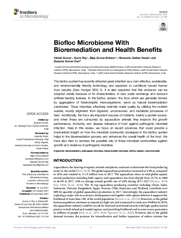(PDF) Biofloc Microbiome With Bioremediation and Health Benefits ...