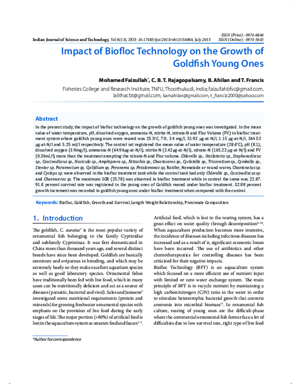 (PDF) Impact of Biofloc Technology on the Growth of Goldfish Young Ones